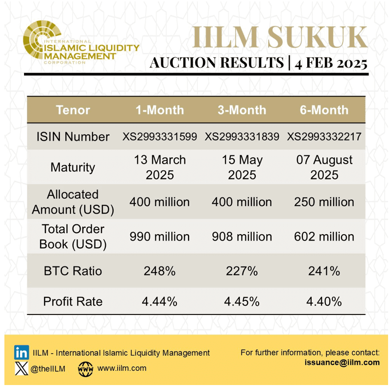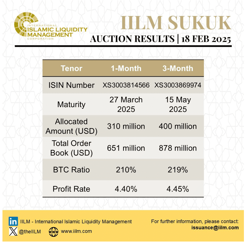 IILM Continues Short Term Sukuk Issuance Momentum with Two Auctions in February 2025 with an Aggregate Reissuance of USD1.76bn