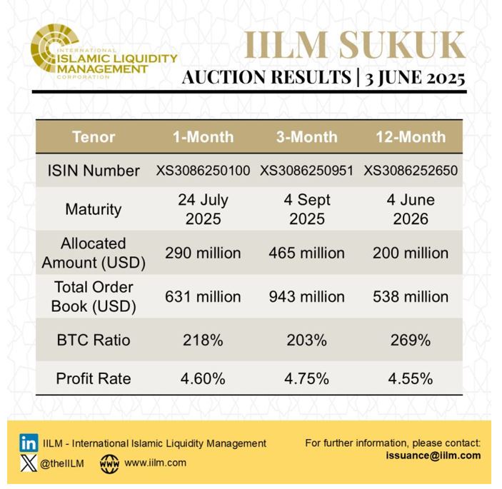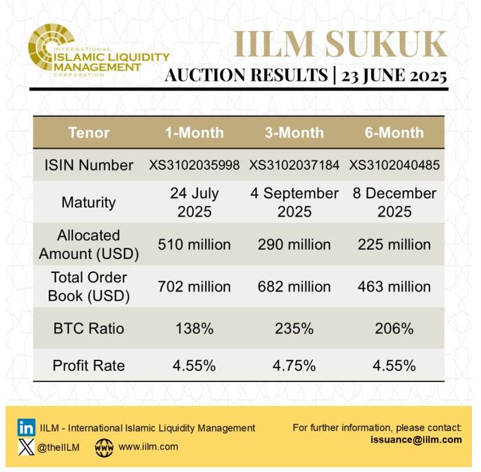 IILM Continues Short Term Sukuk Issuance Momentum with Two Auctions in June 2025 with an Aggregate Reissuance of USD1.98bn and for the First Six Months of 2025 of USD11.47bn Amid Robust Investor Demand